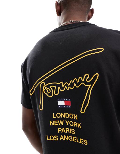 Tommy Jeans - T-shirt met print van geschreven logo met steden op de rug in zwart