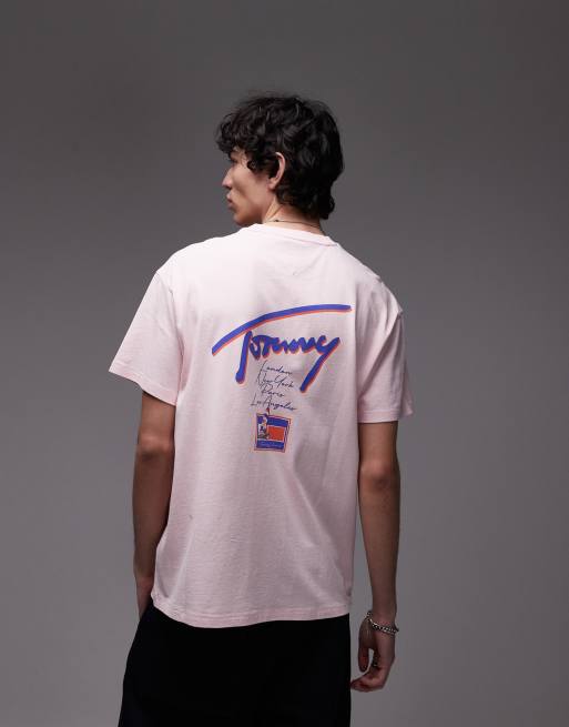 Tommy Jeans - T-shirt met signature-print op de achterkant in roze en paars