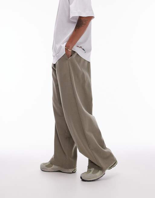 Topman - Baggy joggingbroek van linnenmix in kaki