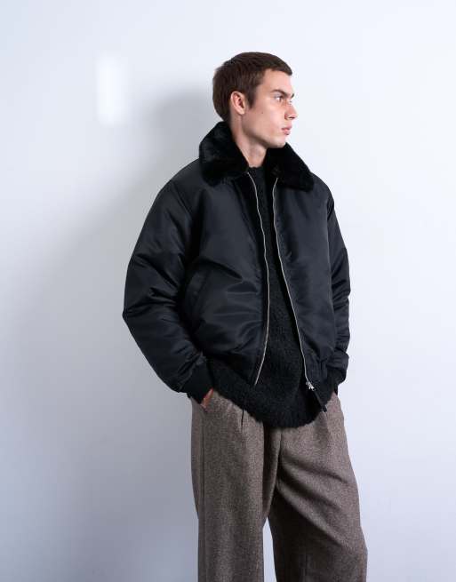 Topman - Bomberjack met kraag van imitatiebont in zwart