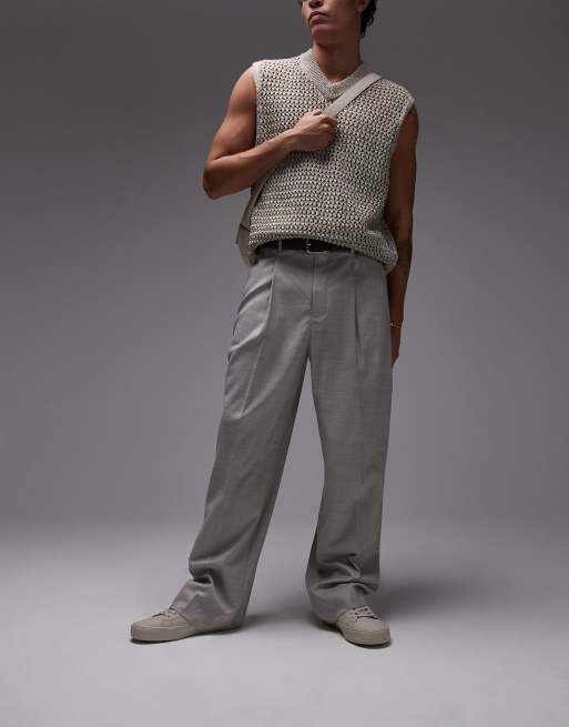 Topman - Broek met wijde pijpen in stone