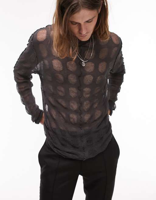 Topman - Doorschijnende lichtgewicht trui met lange mouwen in bruin