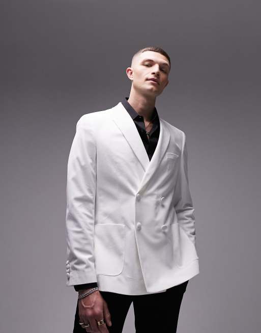 Topman - Double breasted fluwelen blazer in wit