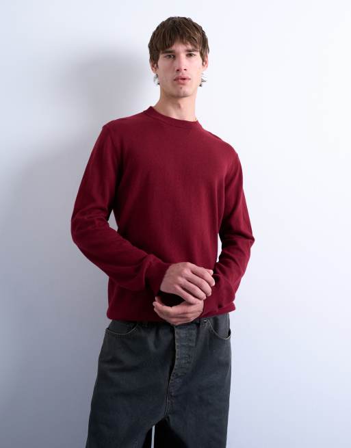 Topman - Essential - Gebreide trui met ronde hals in bordeauxrood