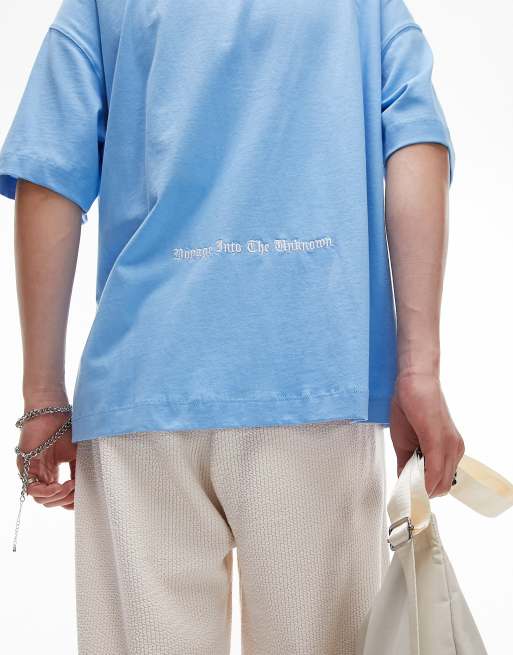 Topman - Extreem oversized T-shirt met 'Existence'-borduursels op de voor- en achterkant in blauw