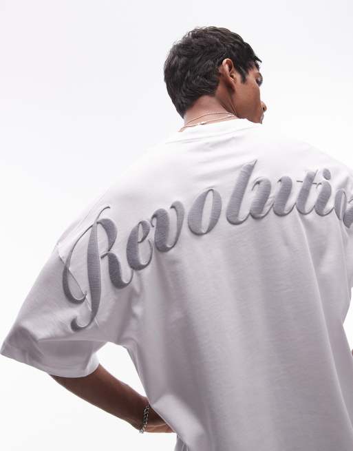 Topman - Extreem oversized T-shirt van zware stof met geborduurde Revolution-tekst op de voor- en achterkant in wit