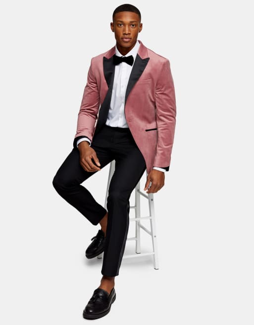 Topman - Fluwelen skinny colbert en slim fit pantalon in lichtroze