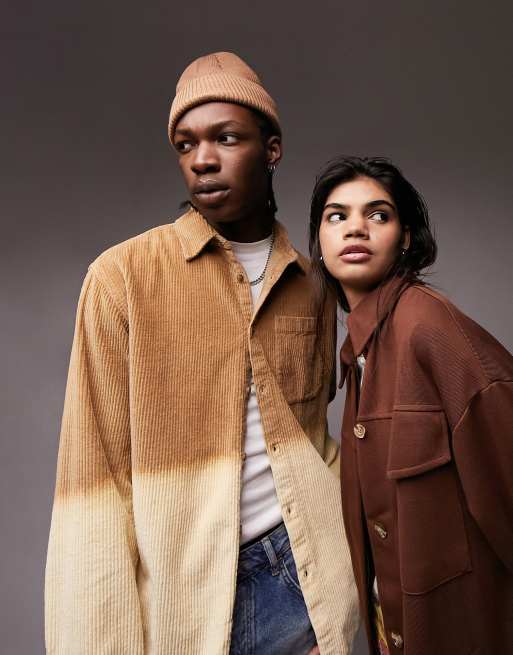 Topman - Gebleekt corduroy overhemd in tabaksbruin