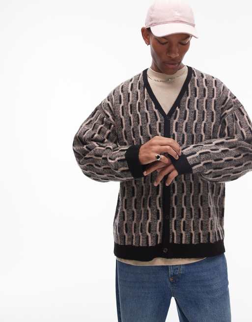 Topman - Gebreid, geborsteld vest met kabels in zwart