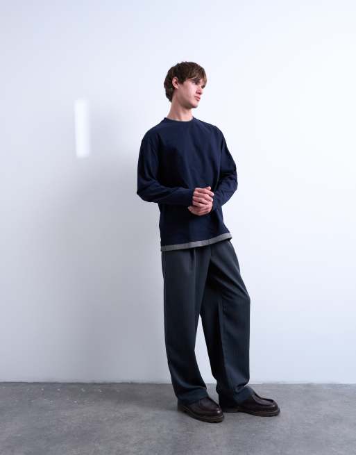 Topman - Gelaagd T-shirt van jersey met lange mouwen in marineblauw en grijs
