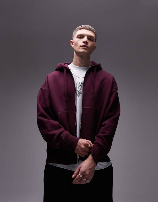 Topman - Hoodie met rits en oversized pasvorm in bordeauxrood