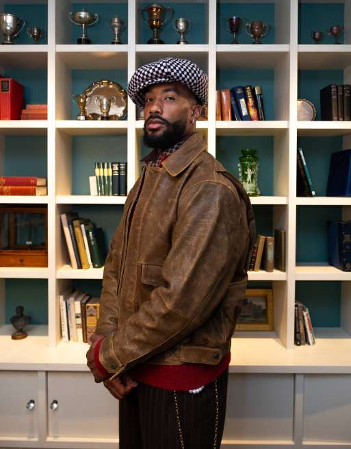 Topman - Jas van echt leer met dubbele zak in lichtbruin