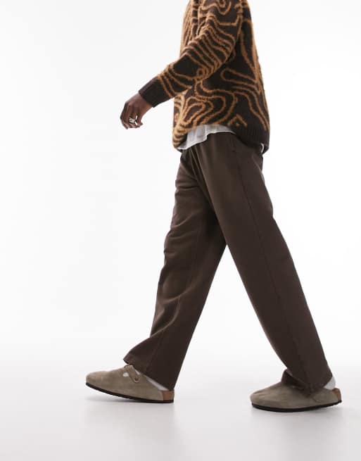 Topman - Joggingbroek met rechte pijpen in bruin wassing