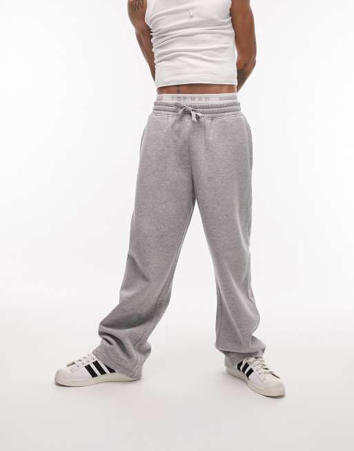 Topman - Joggingbroek met rechte pijpen in gemêleerd grijs