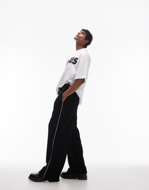 Topman - Joggingbroek van velours met baggy pijpen en bies aan de zijkant in zwart