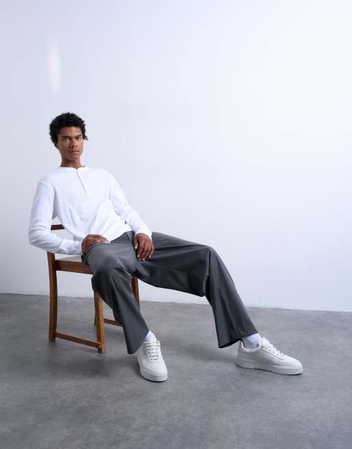 Topman - Klassiek geribbeld Henley T-shirt met lange mouwen in wit