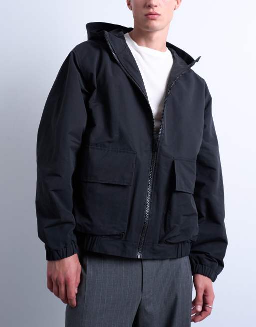 Topman - Kort jack met rits en capuchon in zwart