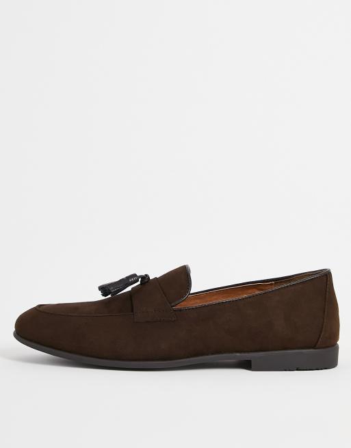 Topman - Loafers van imitatiesuède met kwastjes in bruin