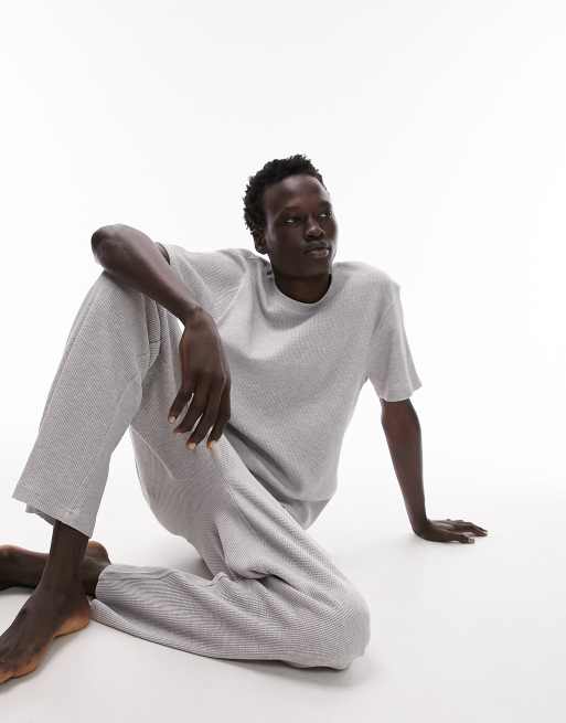 Topman - Loungeset van wafelstof met T-shirt en joggingbroek in grijs