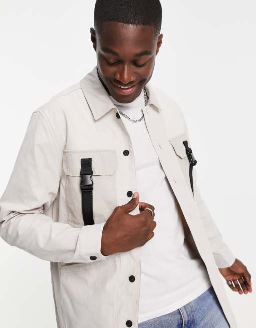 Topman - Overshirt met vier zakken in stone met gespdetails