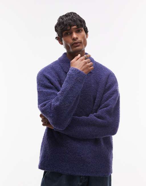 Topman - Oversized bouclé polo in marineblauw