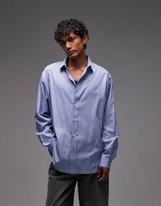 Topman - Oversized gestreept overhemd in blauw