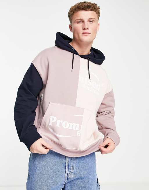 Topman - Oversized hoodie met roze en marineblauwe vlakken