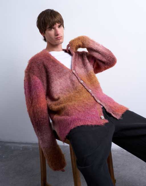 Topman - Oversized pluizig gebreid vest met kleurverloop in bordeauxrood