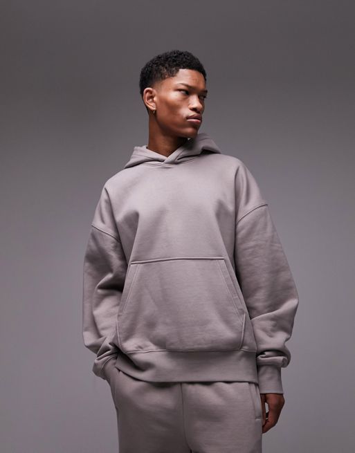 Topman - Oversized premium hoodie van zware kwaliteit in lichtbruin