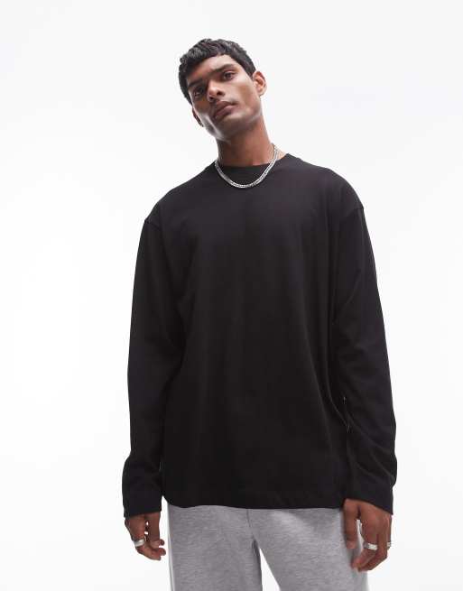 Topman - Oversized skater T-shirt met lange mouwen en naaddetails in zwart