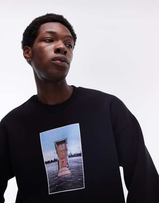 Topman - Oversized sweatshirt met New York-fotoprint in zwart