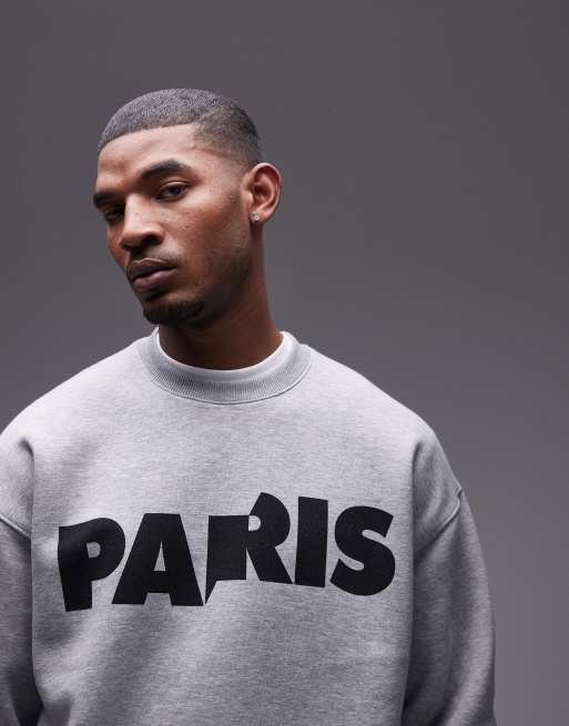 Topman - Oversized sweatshirt met Paris-print in gemêleerd grijs