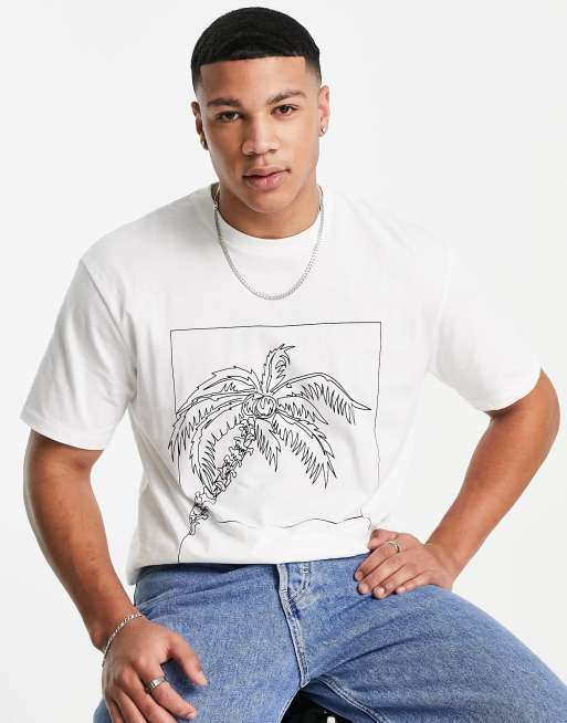 Topman - Oversized T-shirt met geschetste palmprint in wit
