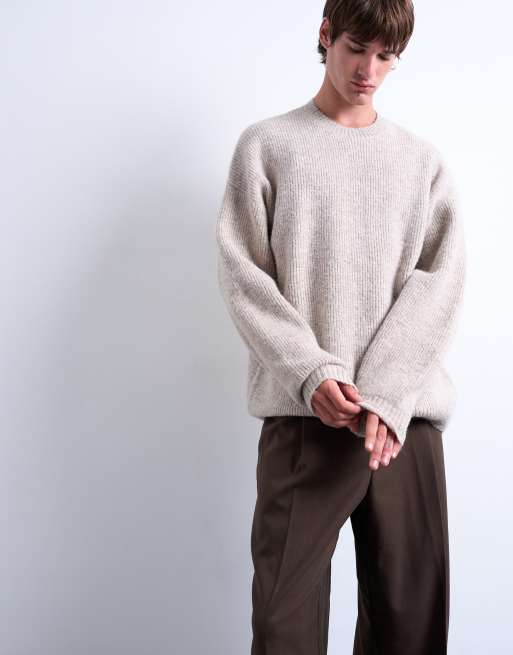 Topman - Oversized trui met ronde hals in stone