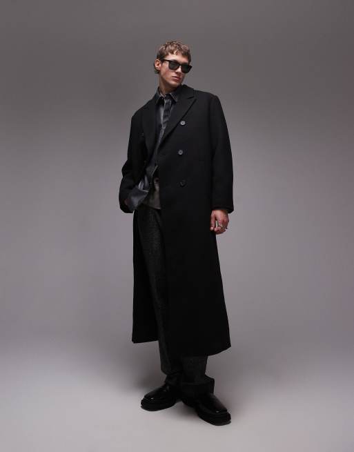 Topman - Premium - Double breasted oversized overjas van wolmix in zwart