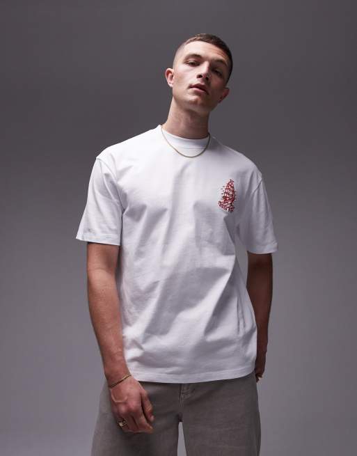 Topman - Premium - Oversized T-shirt met schip borduursel in wit