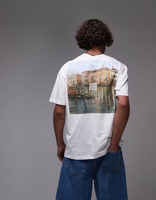 Topman - Premium - Ruimvallend T-shirt met gondelprint voor en achter en borduursel in wit