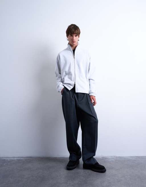 Topman - Recht sweatshirt van zware stof met rits en opstaande boord in gemêleerd lichtgrijs