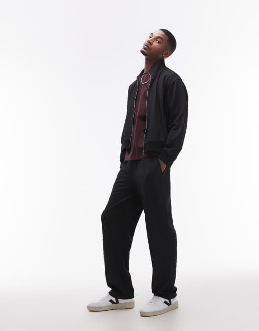 Topman - Rechte joggingbroek met micro wafelstructuur in zwart