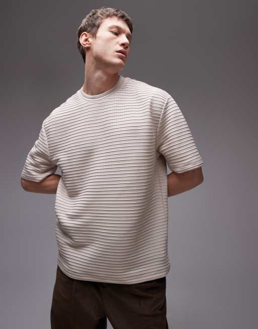 Topman - Ruimvallend T-shirt met ribbels in stone