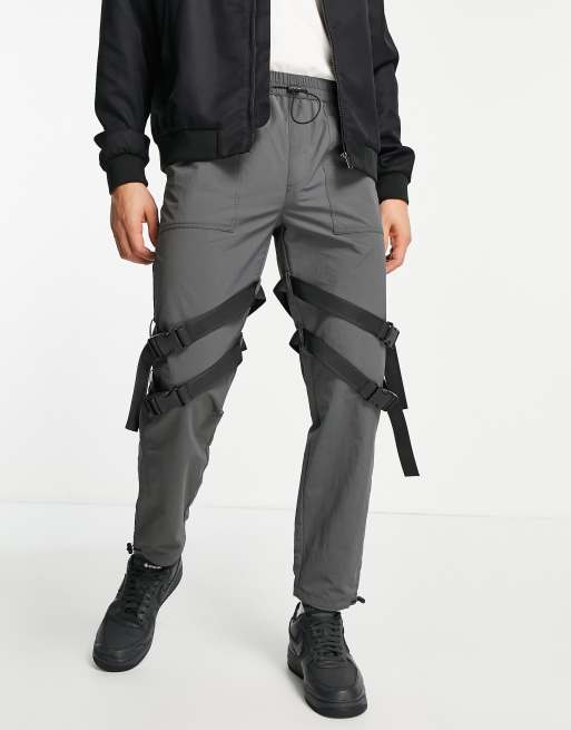 Topman - Ruimvallende nylon joggingbroek met geweven detail in antraciet
