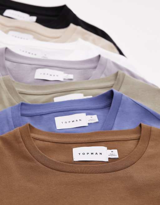 Topman - Set van 7 klassieke T-shirts in zwart, wit, grijs, stone, blauw, bruin en kaki