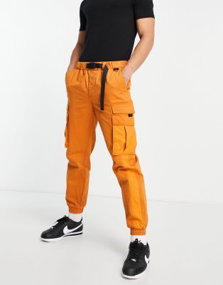 Topman - Skinny cargobroek met riem en zijpaneel in oranje