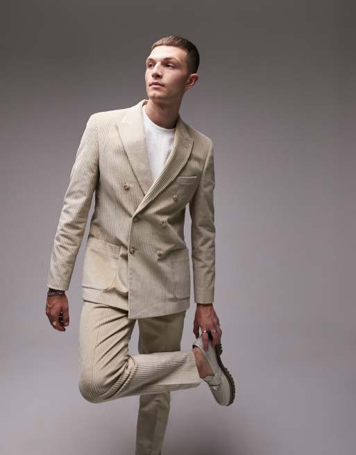 Topman - Skinny double-breasted colbert van corduroy in stone