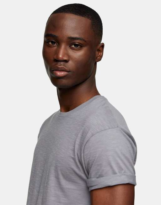 Topman - Skinny T-shirt met omgeslagen mouwen in grijs