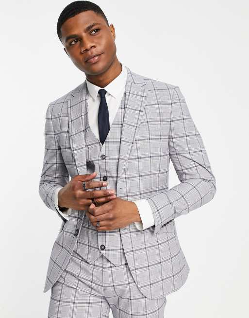 Topman - Superskinny geruit single-breasted colbert in grijs