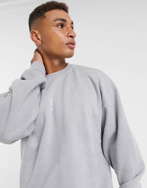 Topman - Sweater met overdye en Tokyo-print in grijs