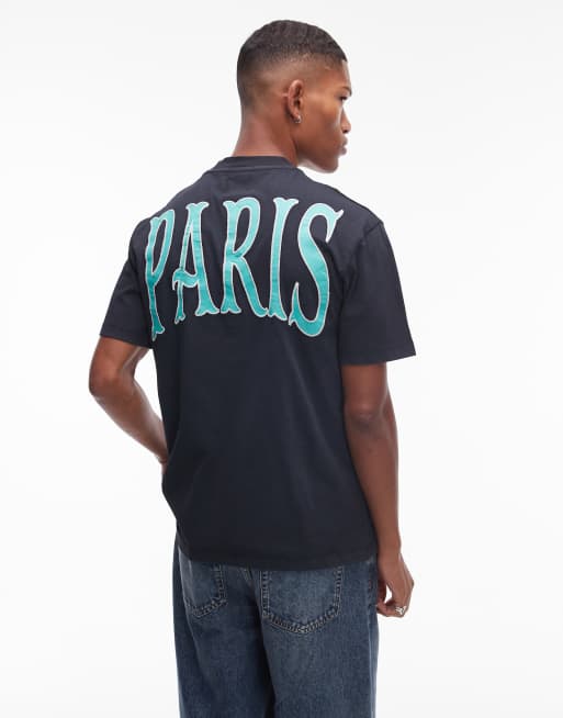 Topman - T-shirt met extreem oversized pasvorm en 'Paris' print op de voor- en achterkant in zwart met wassing
