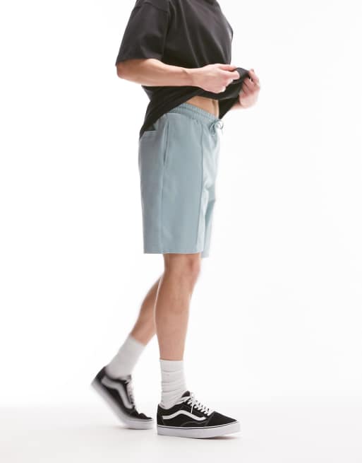 Topman - Toelopende shorts met plat gestikte plooitjes in lichtblauw