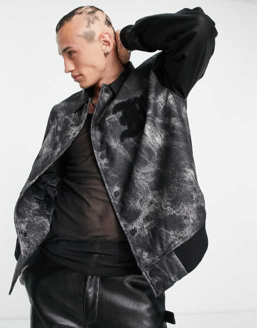 Topman - Varsity Jack van imitatieleer met distressed afwerking in zwart